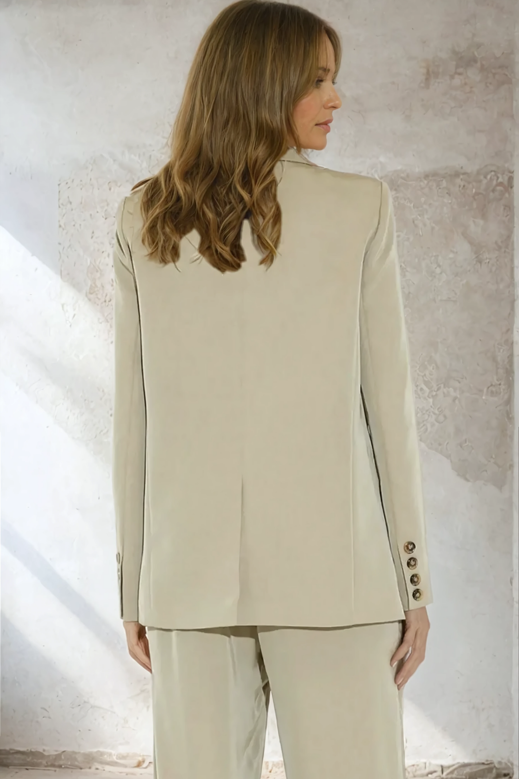 Refined and refreshingly modern, the Giselle Blazer in Pastel Blue is the perfect tailored essential. Crafted with a smooth satin-touch fabric and fully lined for a polished finish, this blazer balances timeless structure with soft, feminine tones. Featuring a sharp notched lapel, single-breasted design, and functional flap pockets, it’s your go-to for elevated daywear or effortless power dressing.