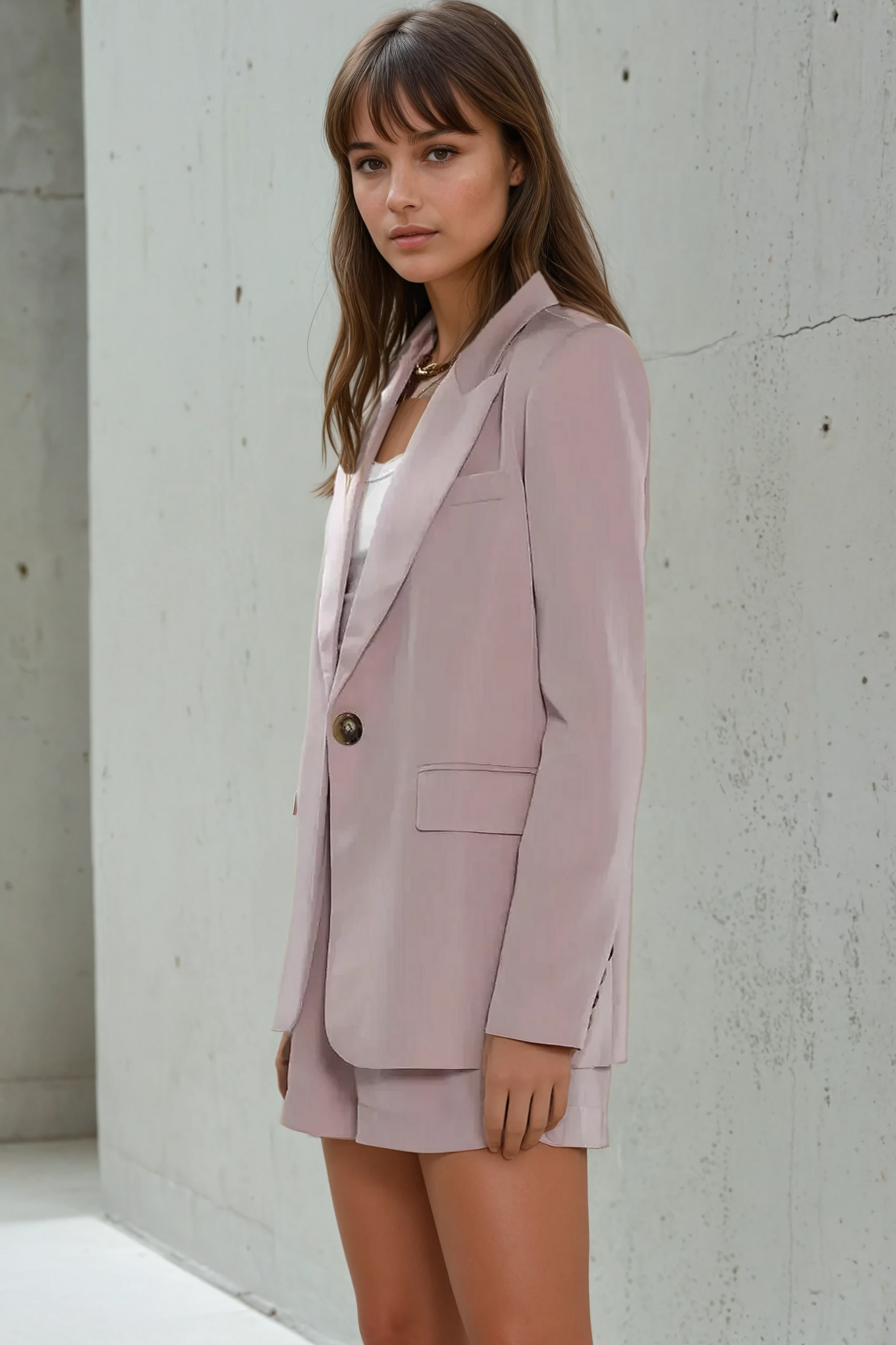 Refined and refreshingly modern, the Giselle Blazer in Pastel Blue is the perfect tailored essential. Crafted with a smooth satin-touch fabric and fully lined for a polished finish, this blazer balances timeless structure with soft, feminine tones. Featuring a sharp notched lapel, single-breasted design, and functional flap pockets, it’s your go-to for elevated daywear or effortless power dressing.