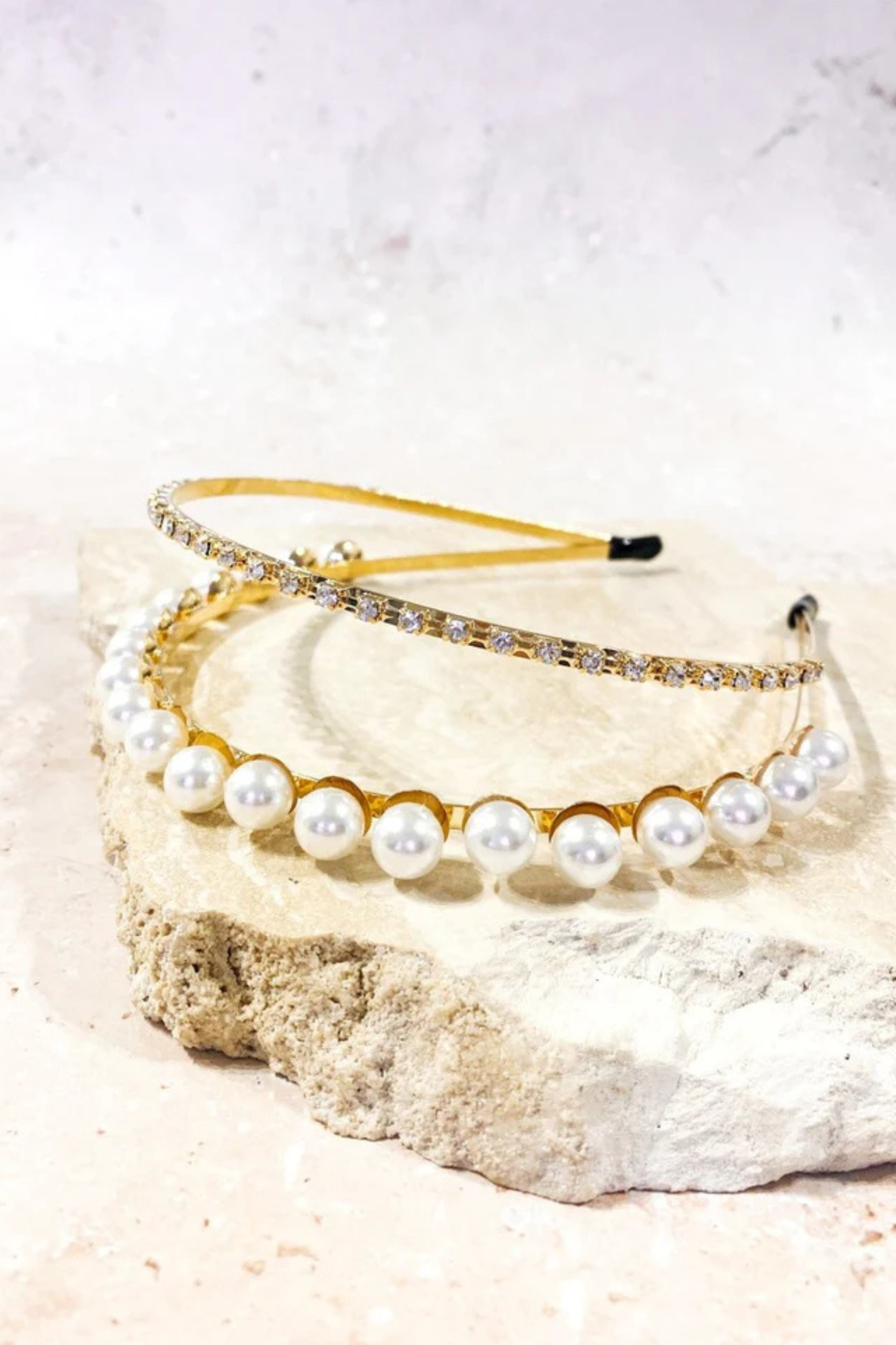 Elegance, elevated. The Ariana Headband is a double-layered dream featuring lustrous faux pearls and a delicate row of sparkling diamantés on a golden band. Designed to frame your face with timeless charm and just the right amount of glam, it’s the perfect accessory for romantic dinners, special occasions, or simply being the best-dressed in the room. Whether you wear it with soft waves or a sleek bun, Ariana adds a regal, muse-worthy touch to any look.