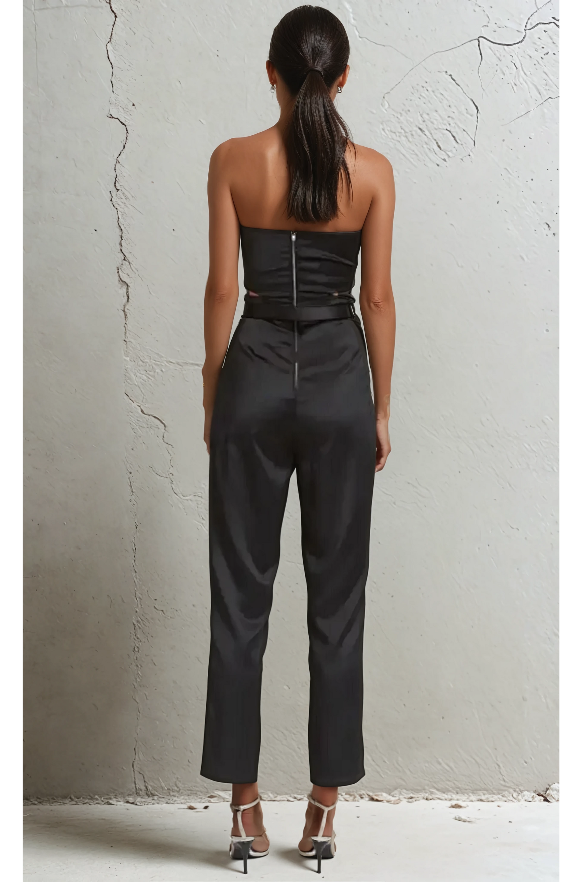 Timeless, sleek, and endlessly flattering—introducing the Élodie Satin Jumpsuit, a modern statement piece crafted for sophisticated evenings. This one-piece wonder features a structured strapless neckline, tailored legs, and a cinched waist accentuated with a shimmering embellished belt. Made from a satin-style fabric, Élodie brings understated glamour and confidence in every step. Whether you're heading to a dinner date or cocktail event, this jumpsuit is your go-to for effortless elegance.