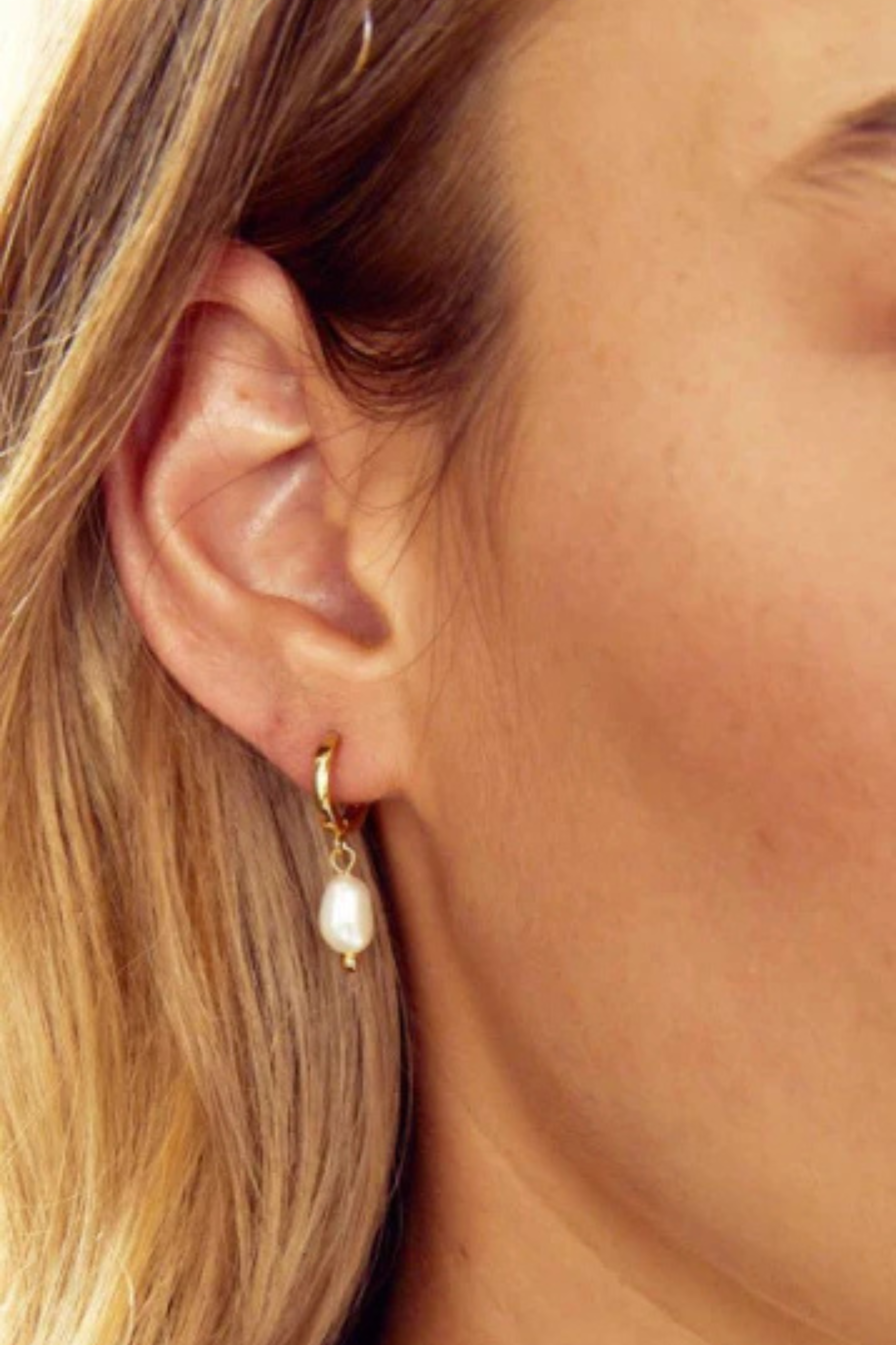Refined and romantic, the Elora Pearl Drop Earrings are crafted for effortless elegance. Each piece features a luminous teardrop-shaped freshwater pearl suspended from a sleek gold-plated hoop, offering timeless charm with a modern finish. Lightweight and delicate, they bring a soft glow to both everyday ensembles and elevated looks. Whether styled with a silk slip or tailored blazer, these earrings are a go-to for subtle sophistication.