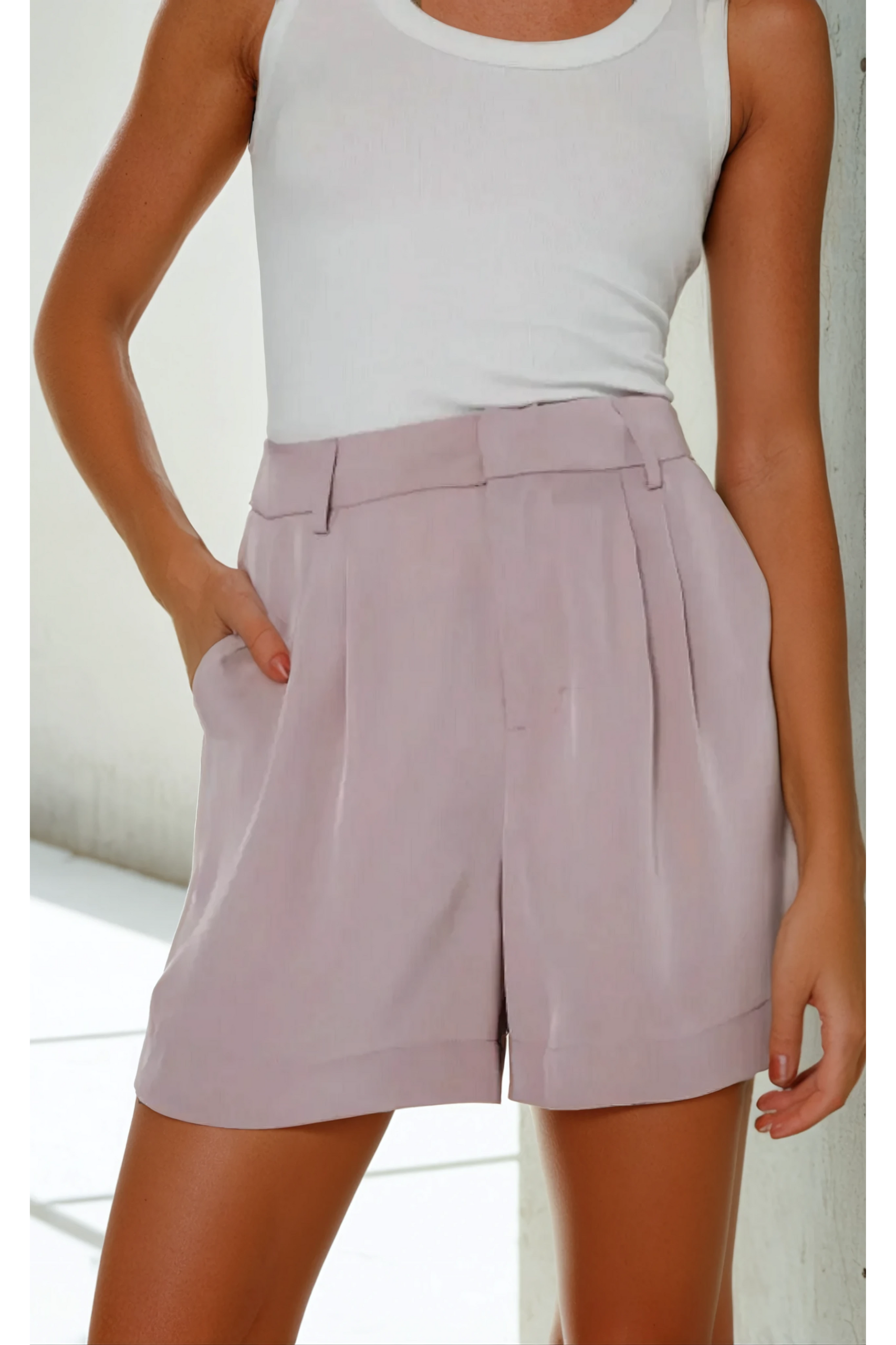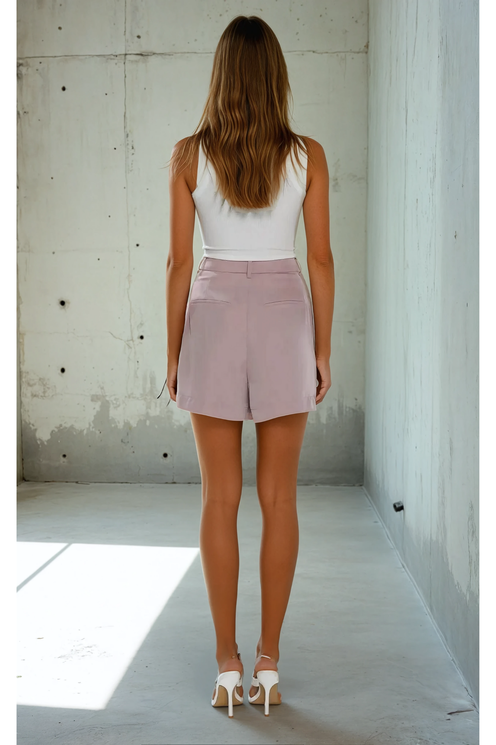 Tailored elegance meets modern ease in the Giselle Suit Shorts. Designed with clean lines and a soft tailored structure, these high-waisted shorts are crafted from a smooth suiting fabric in a muted blush hue. They feature sharp front pleats, a structured waistband with belt loops, and a concealed zip-front for a refined finish. Side pockets offer practicality while the minimalist silhouette keeps it polished. For a chic power pairing, style it with our matching Giselle Blazer to complete the full suiting look.