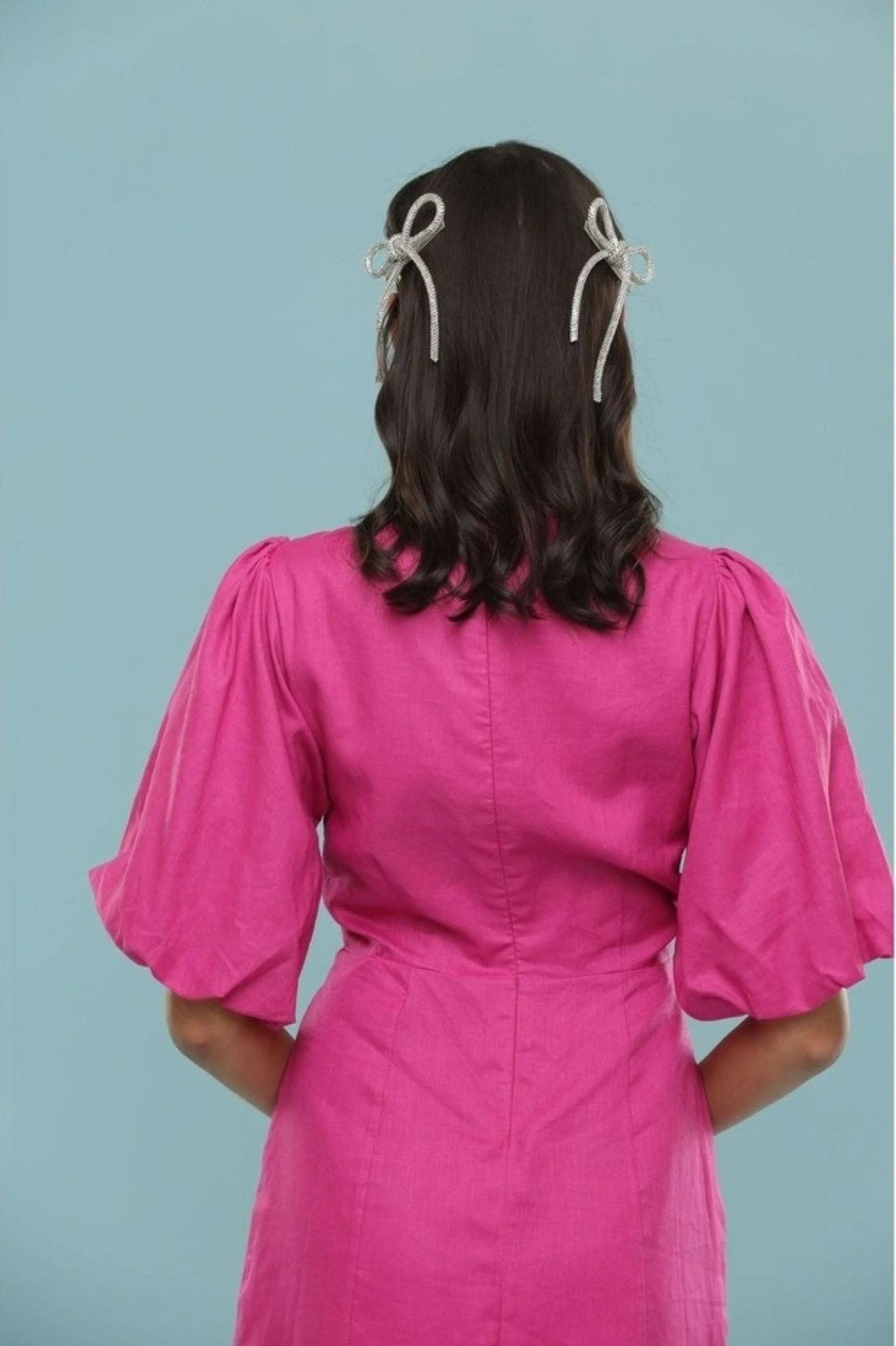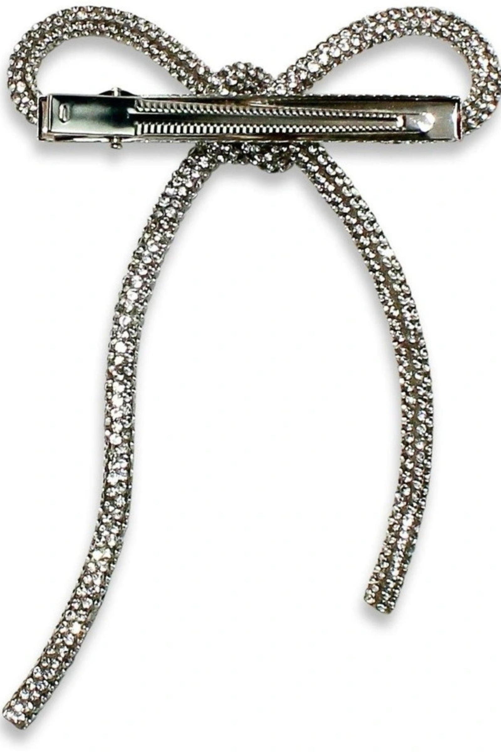 Add an icy shimmer to any look with the Glacé Twinkle Bow Pair. These silver-tone hair clips feature delicate cord-style bows encrusted with fine, light-catching crystals. Chic yet playful, they're the perfect finishing touch for soft waves, sleek ponytails, or evening updos.