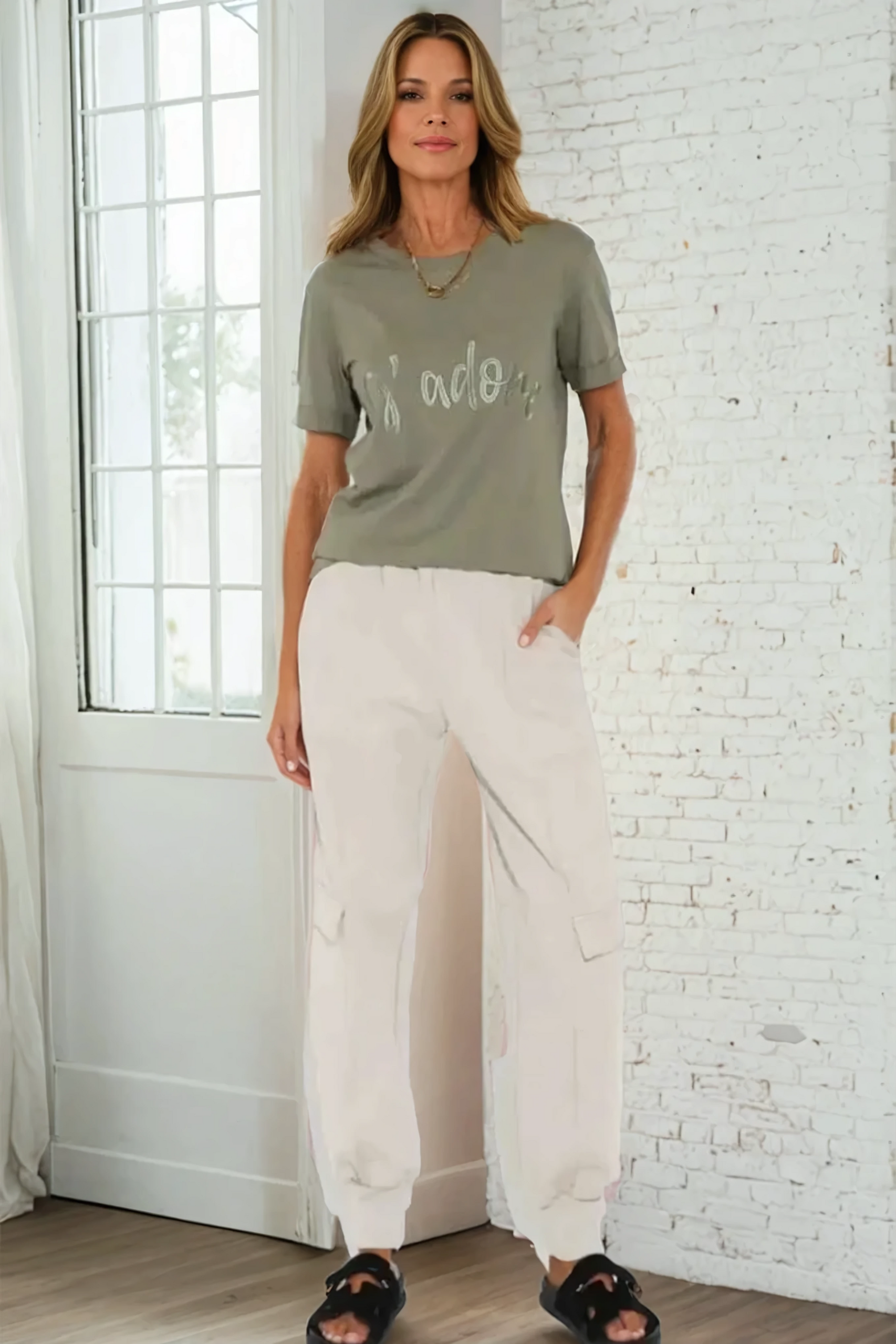 Say hello to effortless cool with the J’adore Tee – your next must-have essential. Designed with comfort and edge in mind, this tee features a classic round neckline, short sleeves, and a relaxed silhouette for easy everyday wear. Finished with exclusive graphic artwork on the front and a versatile khaki tone, it's the perfect throw-on piece to elevate any casual outfit. Pair it with your go-to jeans or layer it under a blazer for off-duty chic.