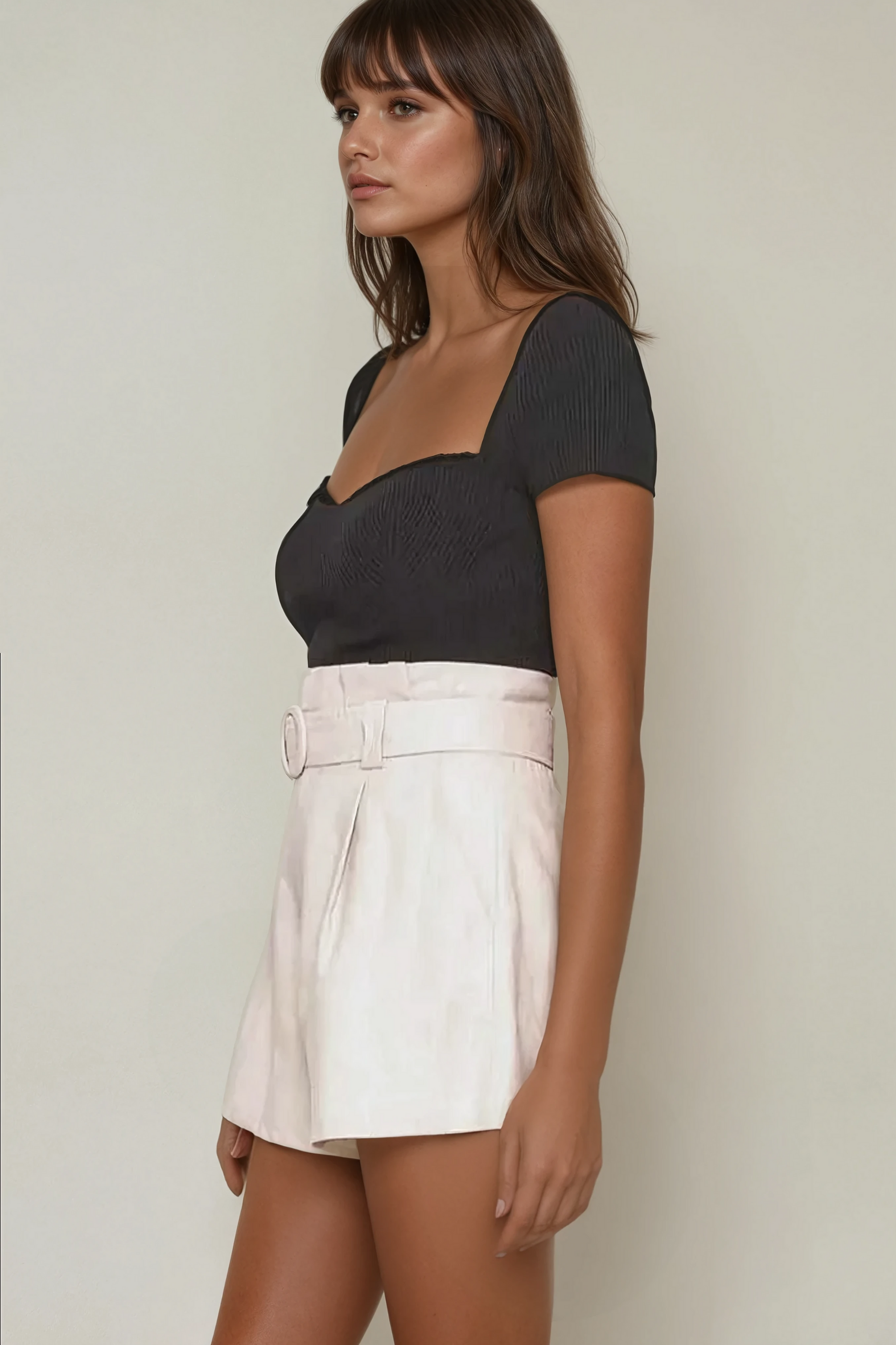 Sweet with a modern edge, the Love Heart Knit Top is a wardrobe must-have for lovers of elevated basics. Designed in a soft ribbed knit, this top features a romantic heart-shaped neckline that flatters the collarbone and adds a playful touch. With short sleeves and a figure-hugging fit, it’s perfect for layering or wearing solo. Pair it with your favorite trousers or a mini skirt for an effortlessly chic look—day or night.