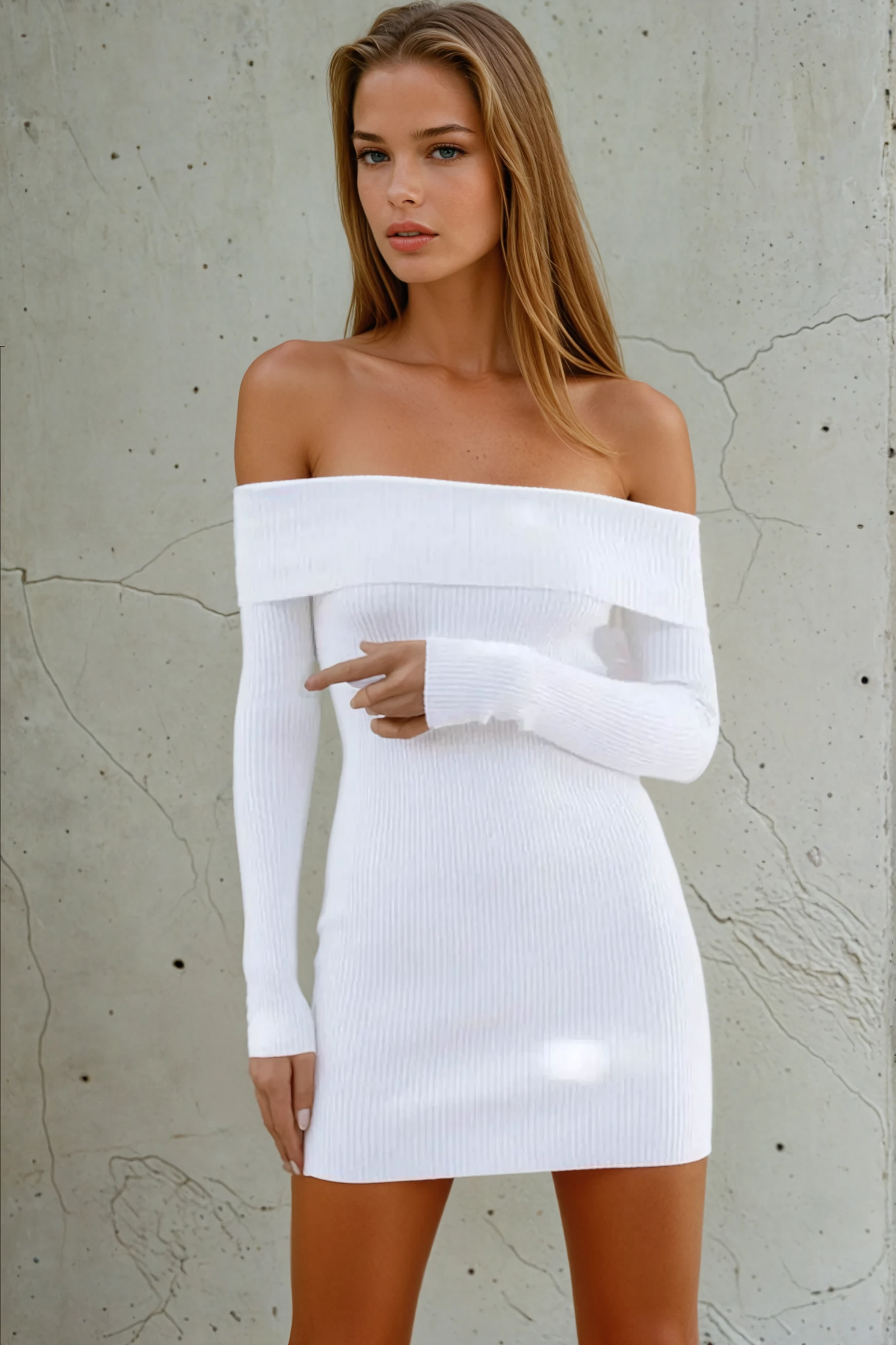 The Paloma Knit Dress is the epitome of effortless allure. Crafted from a soft ribbed knit that hugs your figure in all the right places, this off-shoulder silhouette brings modern romance to minimalism. With long fitted sleeves and a fold-over neckline, it’s the perfect blend of cozy texture and clean lines. Style it with heels for a night out or layer with a trench for an elevated daytime look.