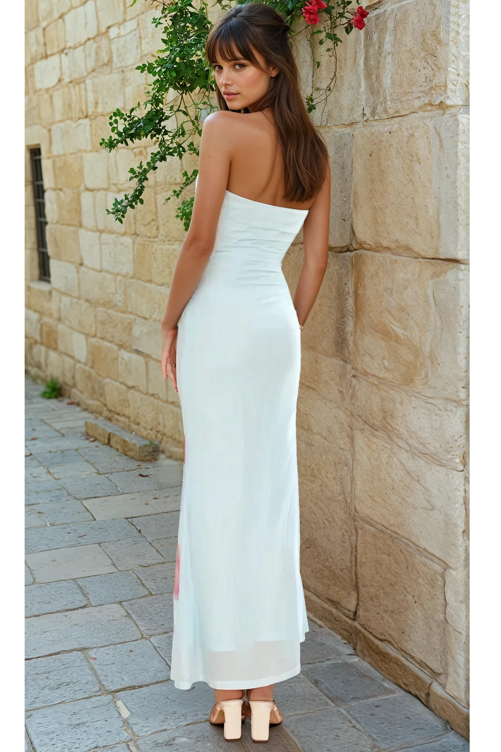 Soft, sculpted, and effortlessly striking — the Separations Maxi Dress is made to move with you. Featuring a strapless neckline and body-contouring stretch fabric, this floral-printed maxi highlights your shape with subtle gathering through the waist and a flirty side split. The silicone-lined bust ensures a secure fit, while the vibrant blooms bring an air of feminine boldness to your day-to-evening wardrobe.