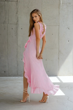 Meet your new go-to for elevated evenings and special events. The Suzannah Maxi Dress features a flattering V neckline with delicate fixed straps and soft frill detailing that adds movement and romance. Pleats at the waist and subtle bust darts create a sculpted silhouette, while a side split with a cascading frill hem brings just the right touch of drama. Feminine, flattering, and designed to stand out — this dress does it all with ease.