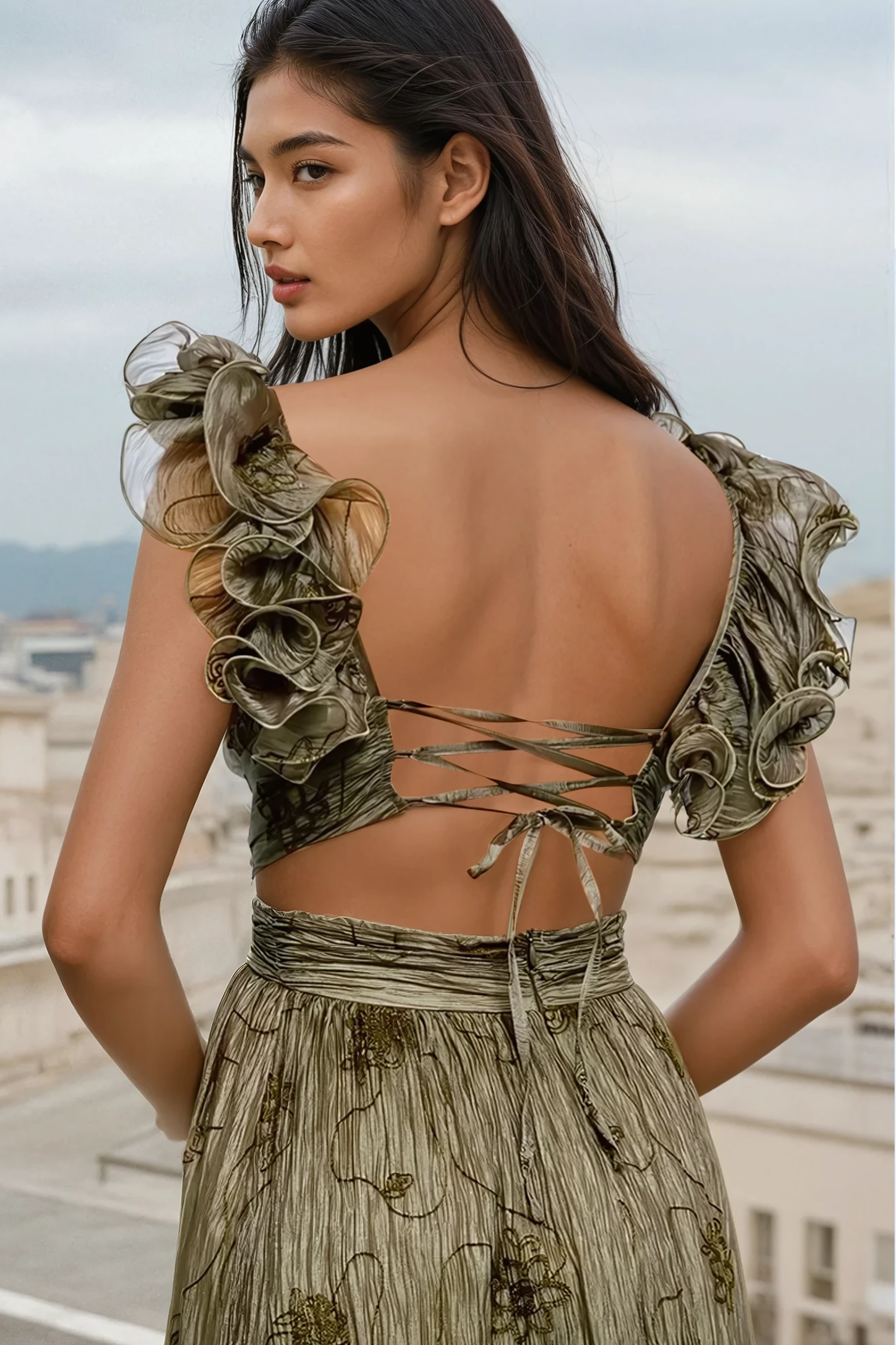 • Ruffled maxi skirt for graceful movement